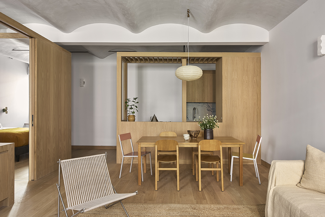 Cuando el propietario de un apartamento en la ciudad de Nueva York contrató al arquitecto Evan Erlebacher, También hay una oficinaPara obtener ayuda con la renovación, sus requisitos se redujeron a algunas cuestiones clave: “Exponer el techo original, crear una sala de estar que abarque dos ventanas, incluir un espacio de trabajo exclusivo e instalar una mesa de comedor para seis personas”, dice Evan. “También solicitó armarios adicionales, incluido almacenamiento para dos bicicletas, una cocina ampliada y un baño con ducha”. Ah, y colóquelo todo en los 680 pies cuadrados de espacio.