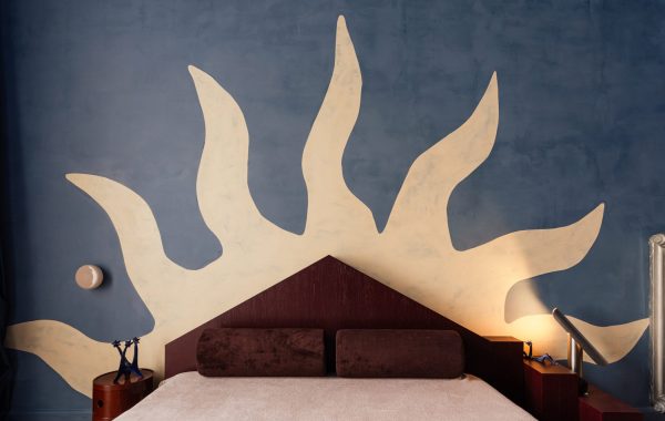 “Anclamos la habitación en tonos helados a azul medianoche, combinados con maderas cálidas y detalles gráficos en negro, y salpicados de obras de arte para completar la sensación de una colección personal”.