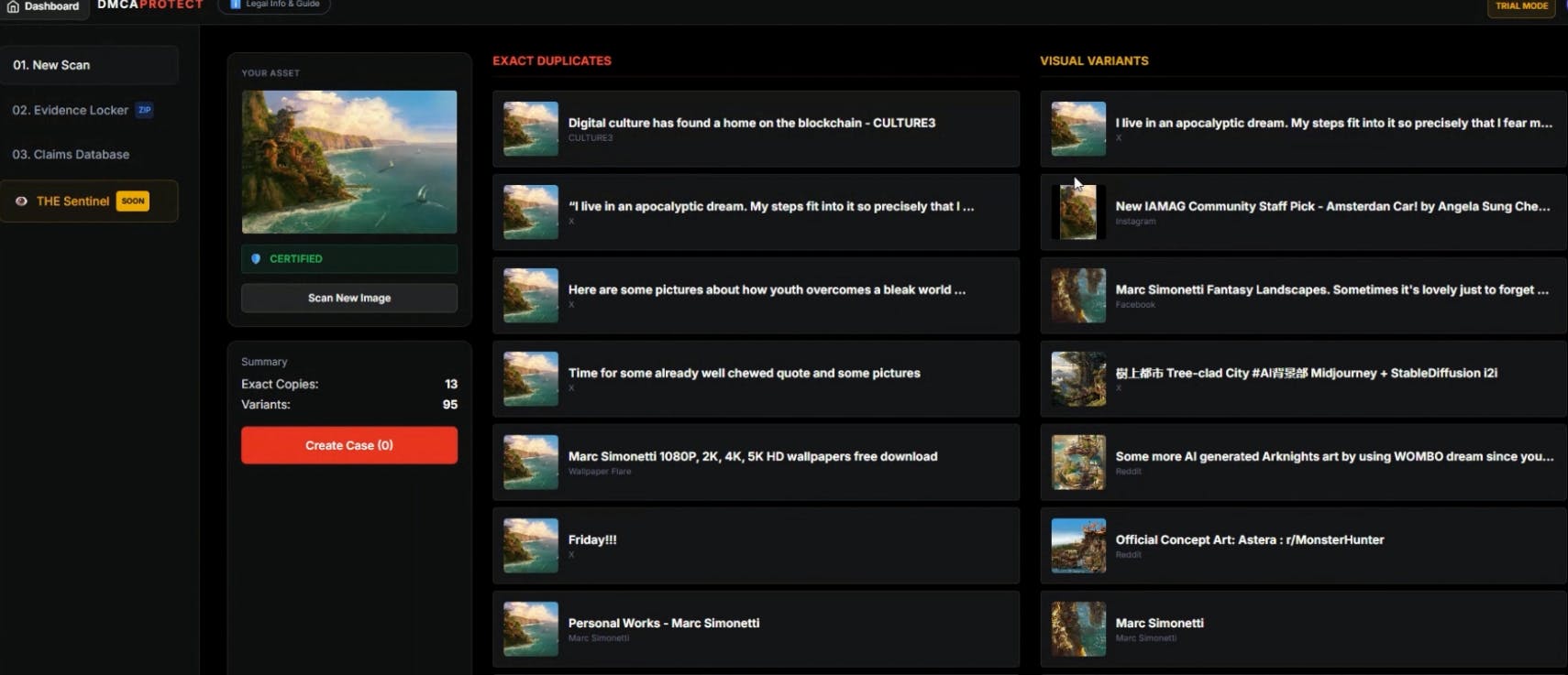 A medida que continuamos desarrollando Sentinel Proporcionar capacidades de automatización a nuestros contribuyentes del Círculo Visionariotenemos algunas noticias para usted: hemos redefinido completamente la UX/UI del módulo DMCA para proporcionar herramientas forenses de nivel profesional para su arte.
