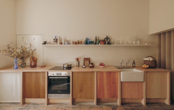 Vista del tocadiscos hecho de robles.