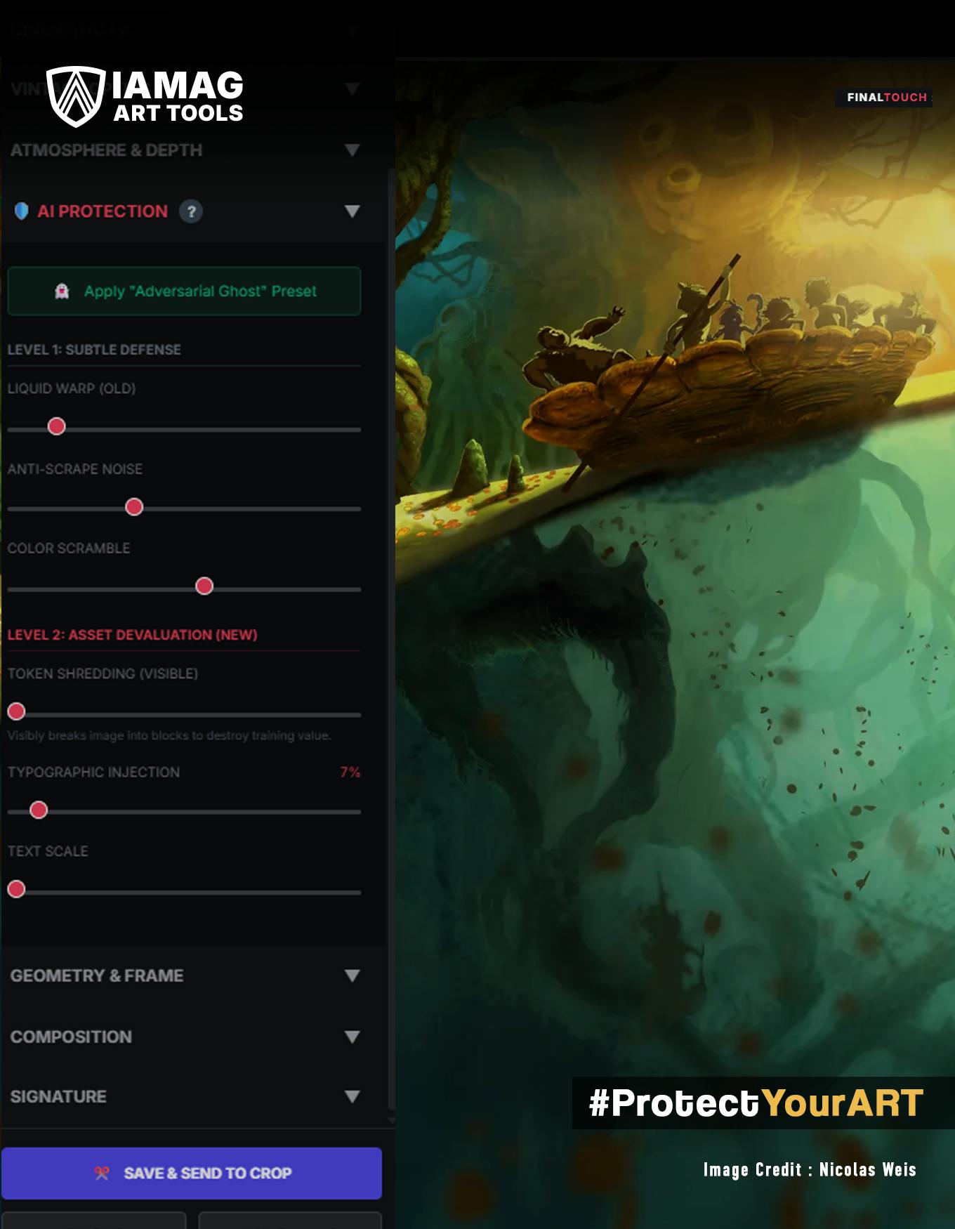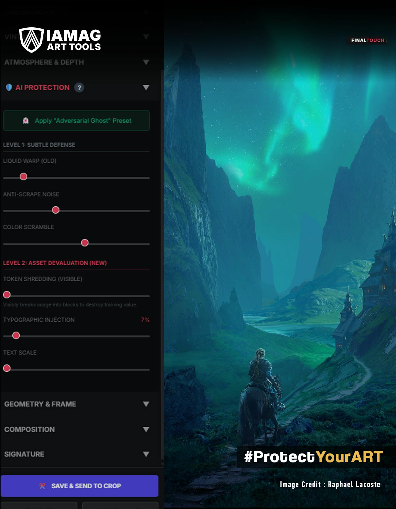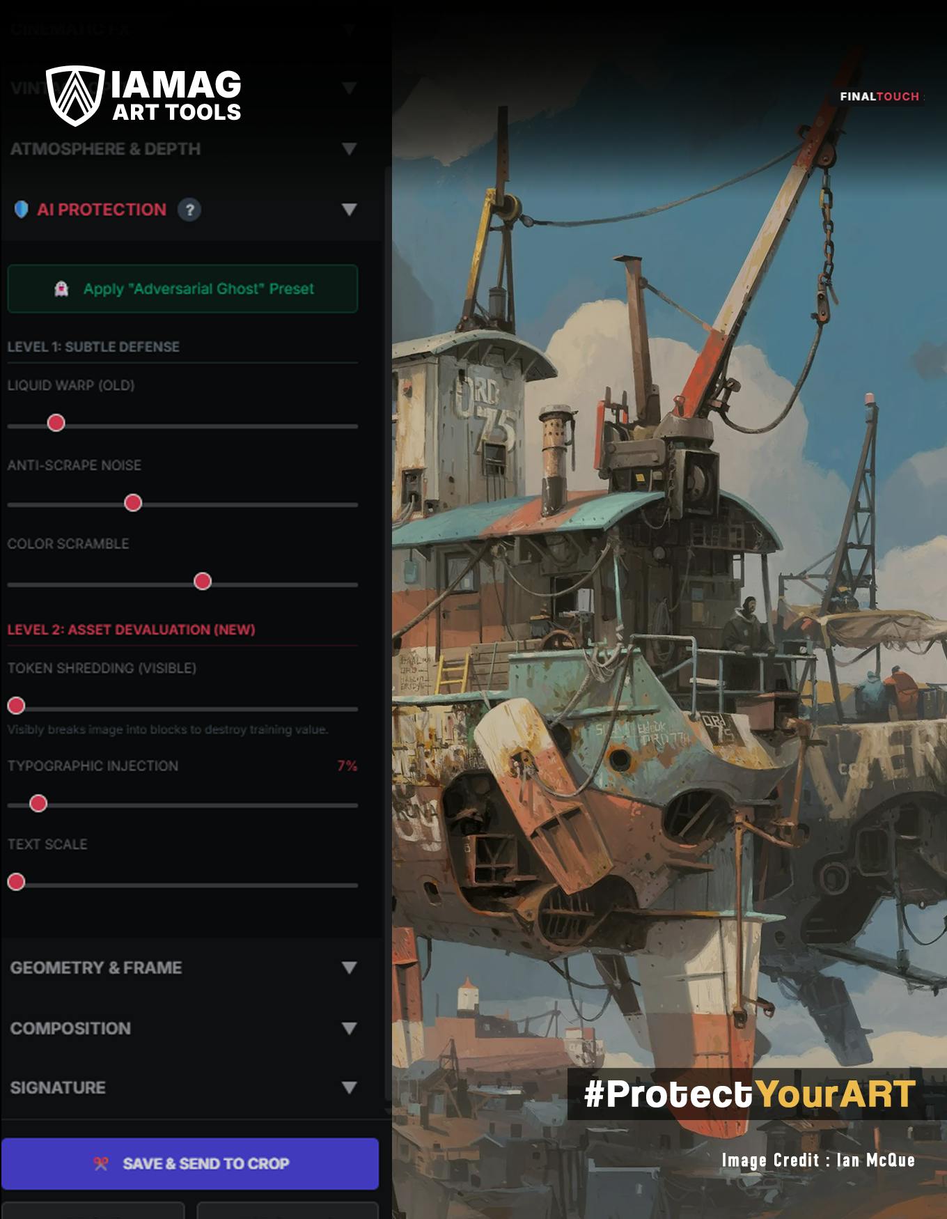 Hemos creado una herramienta web sencilla que te permite envolver tu arte en Interfaz de “protección” IAMAGla misma interfaz de usuario que diseñamos para el software final.