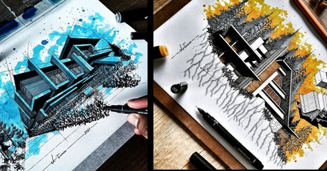 Arquitectura moderna en un mar de colores. Estas tonalidades se consiguen a través de: Fuente Bolígrafomarca y acuarela cuadro.