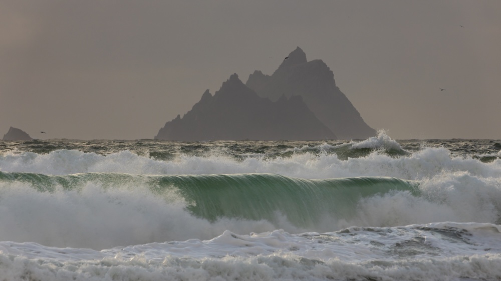 Fotografiar las islas Skellig desde tierra firme fue una de mis ideas. Hace muchos años, cuando estuve por primera vez en ese tramo de costa, tenía una imagen clara en mi mente: las gigantescas olas del Atlántico levantándose, rompiendo y comprimiéndose en una sola pieza frente a la isla. El problema no es la condición ni el momento. se ha logrado.