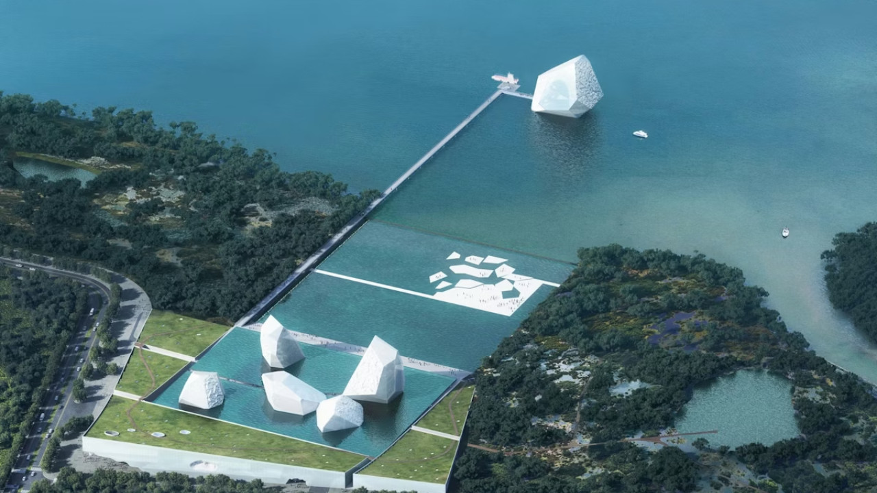 Un mar interior artificial se coloca sobre el espacio de exposición principal, haciendo del agua una presencia visible y funcional dentro del edificio. Seis volúmenes de vidrio con forma de icebergs emergen de esta masa de agua y albergan programas públicos centrados en el aprendizaje y la reunión. Al transformar las presiones costeras en recursos espaciales y educativos, el proyecto tiene como objetivo crear conciencia sobre el calentamiento global al tiempo que propone una relación más adaptativa entre la arquitectura, el agua y la ecología marina.