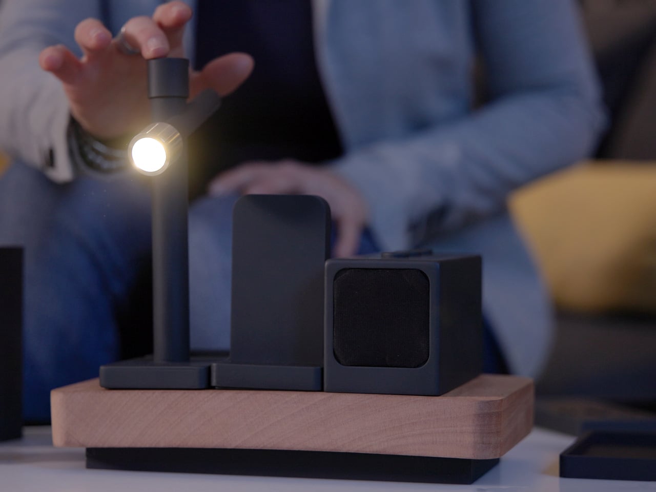 Construido alrededor de una plataforma de madera fresada por CNC hecha a mano en Italia, MODULO le permite combinar módulos de carga, parlantes Bluetooth, pantallas de papel electrónico, luces de trabajo y organizadores en un sistema unificado. Los ocho módulos diferentes están conectados magnéticamente, obteniendo energía y datos a través de conectores chapados en oro clasificados para durar más de 50.000 ciclos. La aplicación Modulo conecta todo, por lo que el cargador de su teléfono, la lámpara de escritorio y la pantalla de notificaciones responden a una única interfaz en lugar de aplicaciones y rutinas de emparejamiento separadas.