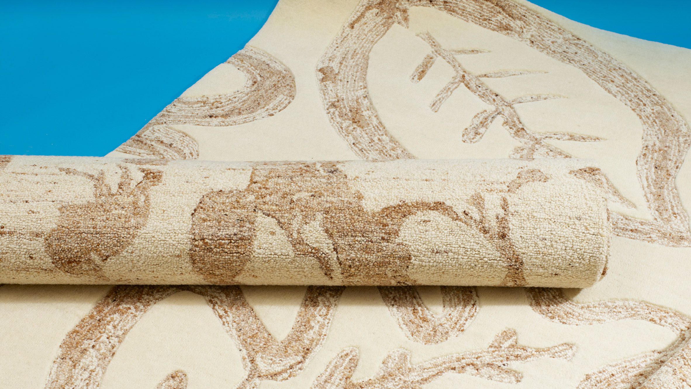 La marca pretende “sorprender, inquietar y provocar la reflexión” a través de sus alfombras, que combinan estilos tradicionales persas con estampados modernos.