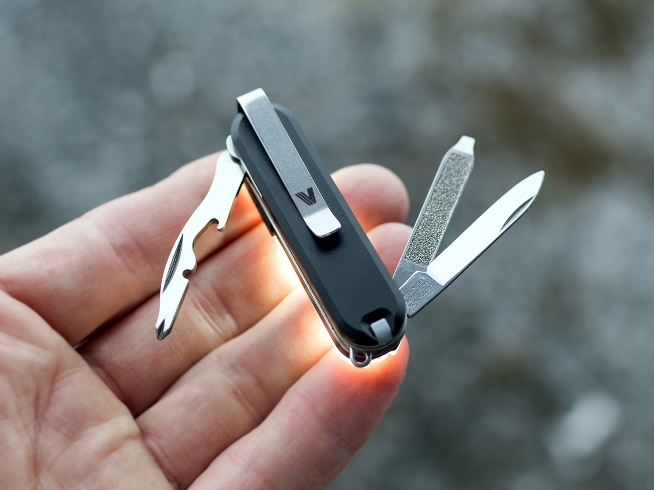 El sistema Versa58 de Keyport rompe esta limitación sin destruir la herramienta. La plataforma presenta una interfaz a presión que se conecta a cualquier remache SAK de 58 mm existente, transformando una báscula fija en un módulo intercambiable. Agregue una luz LED recargable, un mini bolígrafo, una unidad flash USB-C o un clip de bolsillo profundo en solo unos segundos. Elimínelos con la misma rapidez. El cuchillo permanece intacto, la tradición sigue siendo la misma, pero la funcionalidad se expande de maneras que los diseñadores originales nunca imaginaron. Es una combinación de modularidad y tradición, y de alguna manera ambas partes ganan.