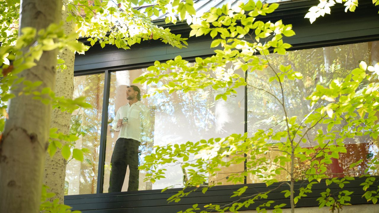 Los dos dijeron que sí y fueron de los primeros en ver el moderno escondite de mediados de siglo de 3700 pies cuadrados rodeado de un frondoso bosque. “Matt y yo nos miramos y dijimos: ‘Esto es todo’. Simplemente lo sabíamos”, dijo Dujanovich. “Buscaba carácter, líneas limpias y una sensación de aislamiento”. “La casa, construida en 1979, cumple los tres criterios y se hace eco de la primera casa que despertó el interés de Milán por la arquitectura contemporánea. “Una de mis películas favoritas cuando era niño era día libre de ferris bueller, Me encantaba la casa de su amigo Cameron”, dijo, refiriéndose a la casa de fibra de vidrio diseñada por un arquitecto que se formó con Mies van der Rohe. “Así que me ha fascinado ese estilo desde que era joven. Creo que ese es mi primer recuerdo del diseño de viviendas. “