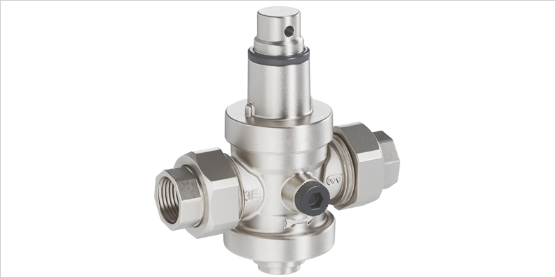 Nueva válvula reductora de presión de pistón con racores HH, N° 3328, parte del nuevo catálogo para 2026 Linea sanitaria hidraulica de Ginebra.