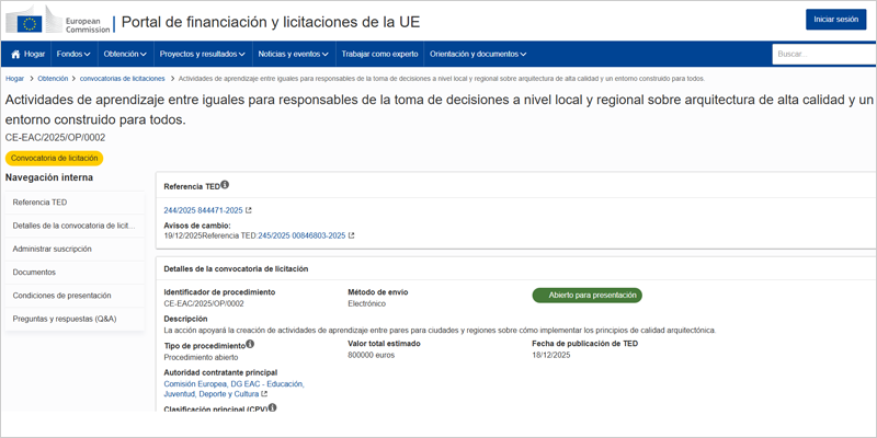 este Comisión Europea Se ha lanzado una convocatoria de propuestas para establecer un programa de aprendizaje entre pares para tomadores de decisiones locales y regionales, centrándose en la arquitectura de alta calidad y el entorno construido. Los candidatos podrán presentar su candidatura antes de las 16:00 horas del 24 de febrero de 2026 (hora central europea).