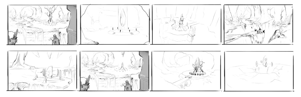 En lo profundo de la cueva, los chamanes realizan rituales de respiración alrededor de cristales suspendidos, sincronizando el sonido y el movimiento para estabilizar la red resonante. El agua y los cristales brillantes actúan como conductos, transformando el ritmo en equilibrio.