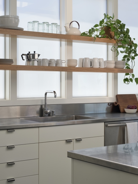 Los estantes abiertos en la cocina mejoran la sensación de amplitud del hogar.