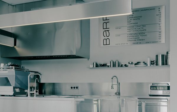 El estudio del padre integra horno, vidrio y cerámica en un área continua