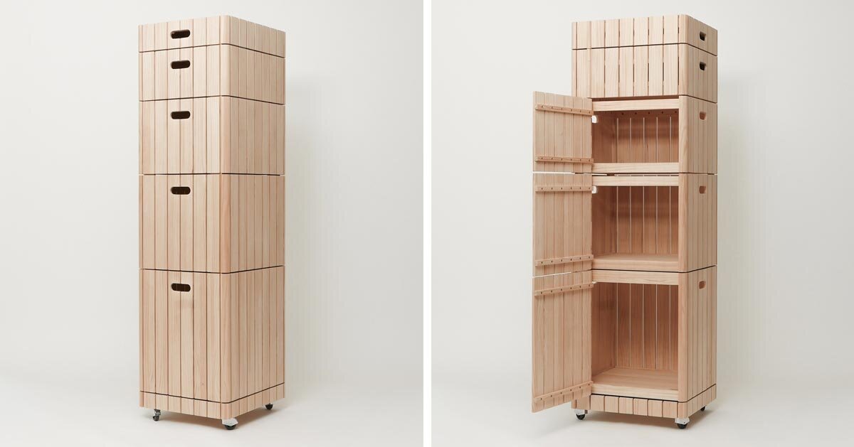 La colección de gabinetes de PnP utiliza paneles de madera y tornillos expuestos para crear almacenamiento modular