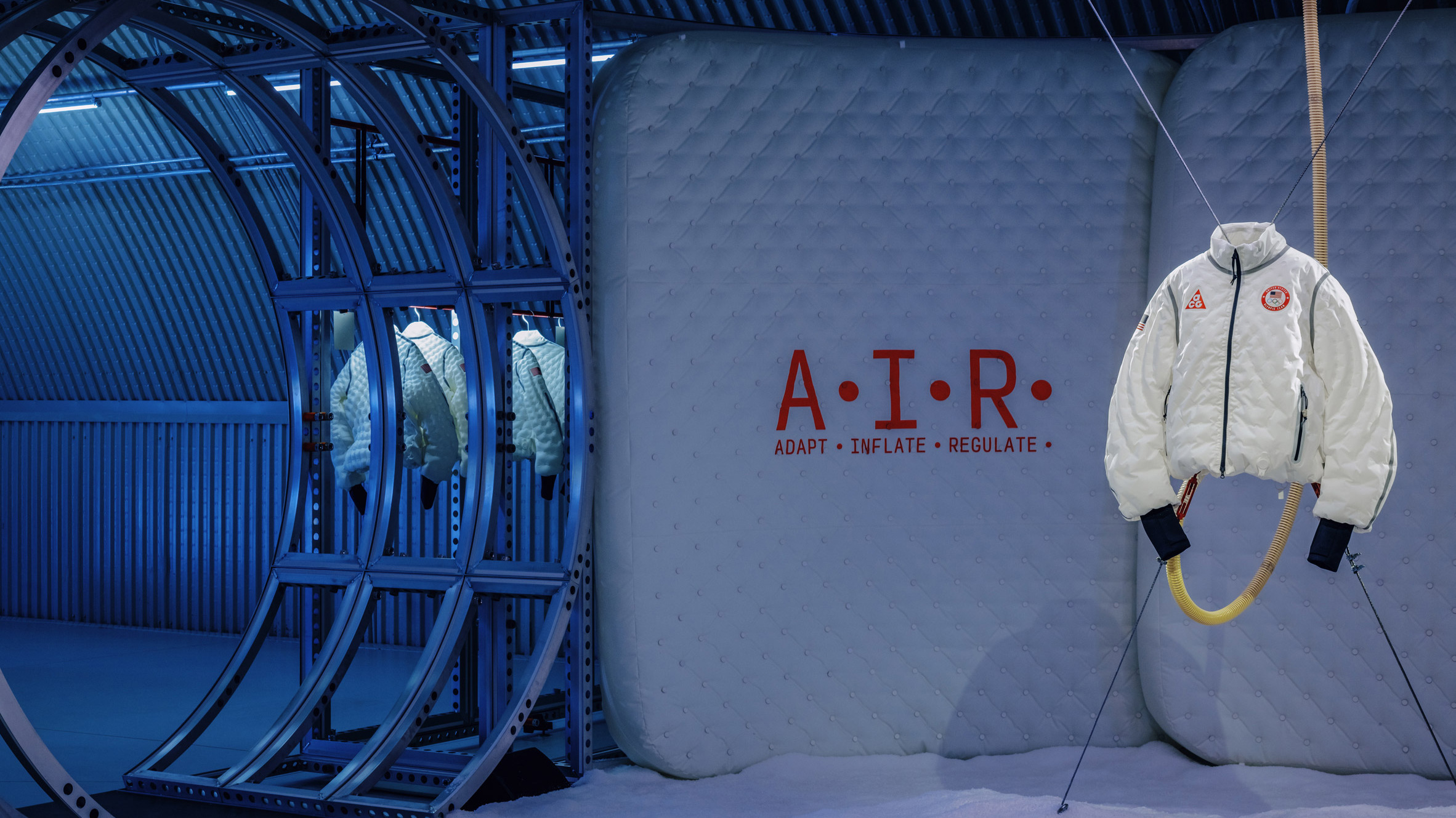 La chaqueta Air Milano, que incorpora la tecnología Air de Nike en la ropa exterior, se exhibió en una instalación creada en una serie de arcos ferroviarios en Milán durante los Juegos Olímpicos de esta semana.