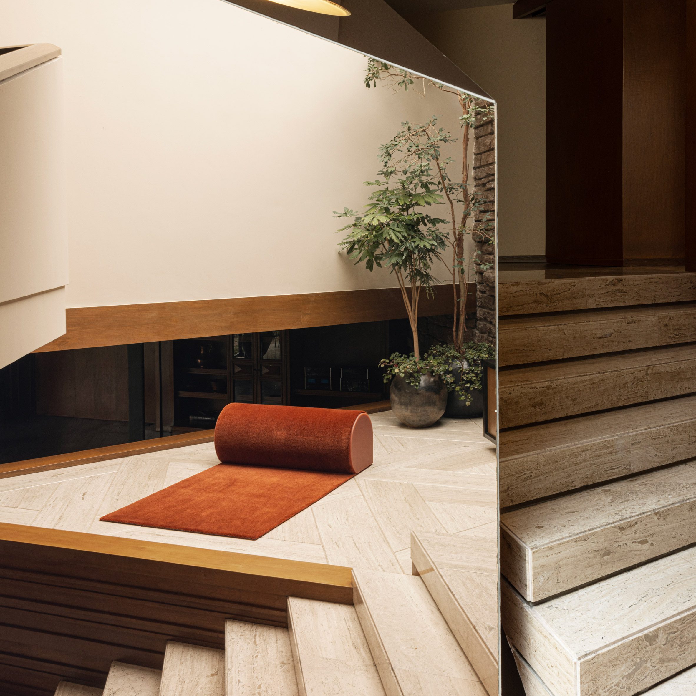Trabaja empresa italiana de vidrio 6 a.m. En el atrio de entrada se presenta un tapiz CC-Tapis, mientras que piezas muy estilizadas de diseñadores como Alana Burns se destacan en el escenario de ballet del teatro de abajo.