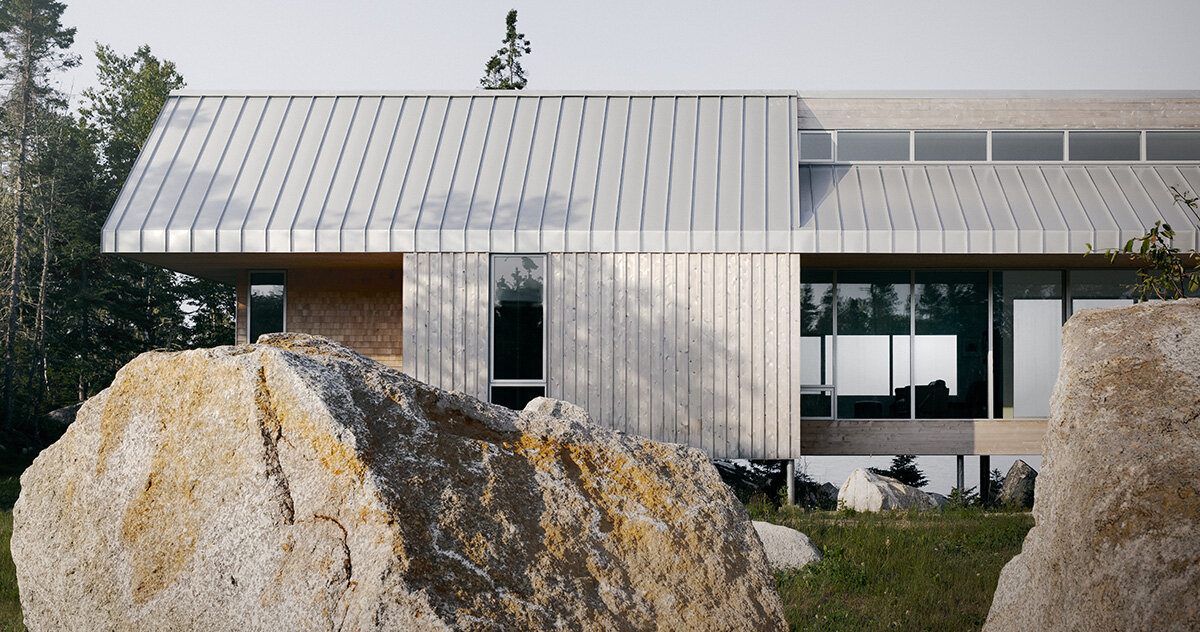 El revestimiento de cedro y los suaves tonos grises hacen eco del paisaje de granito circundante.