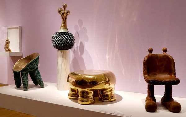La instalación Imole Red de María Magdalena Campos-Pon consiste en el legendario jacinto del desierto de espuma fundida y sus hojas secundarias que se unen como un foro; otro tipo de espacio sagrado que, como los muebles de Paul Ledron, inspira a los visitantes a examinar su entorno y jugar con sus cualidades místicas.