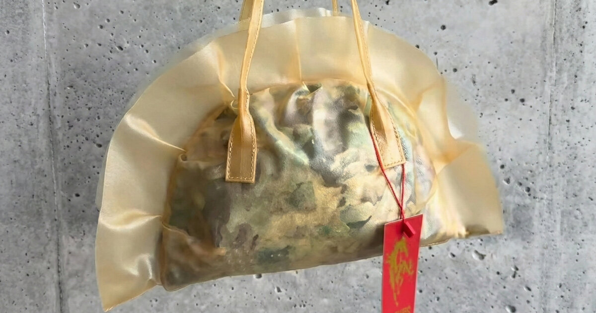 El cuero es traslúcido y de color amarillo claro, como si las bolas de masa hubieran sido cocidas y estuvieran listas para servir. La luz brilla a través del cuerpo del bolso Esenes Worldwide, al menos en los pliegues superiores, haciéndolo parecer más transparente. En el interior hay una imagen de relleno verde y beige que se asemeja a vegetales picados o relleno, lo que agrega textura y profundidad adicionales a este accesorio ya divertido. Al presionar la piel se crean crestas y pliegues desiguales que dan a las bolsas de bola de masa de Esenes Worldwide su apariencia escultórica. Actualmente, la marca planea lanzar solo 150 piezas de este accesorio a partir del 20 de febrero de 2026.
