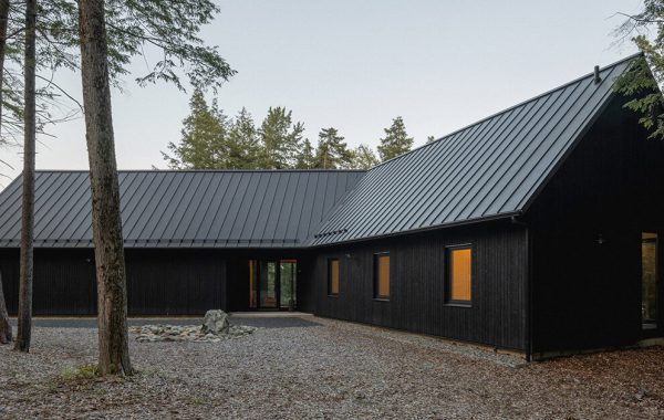 Escondido dentro de un bosque maduro y construido con materiales que complementan los tonos terrosos del bosque circundante, Lake Huron Residence extiende su espacio habitable al aire libre, brindando un lugar para disfrutar del aire fresco y las vistas del agua.