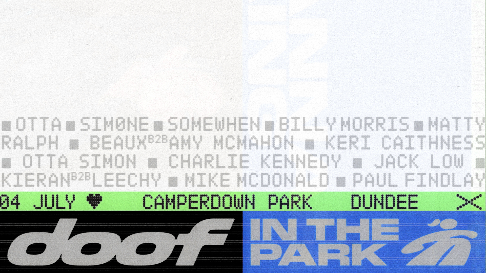 El fundador y director creativo de Fluoro, Tim Smith, dijo que el logotipo original era similar a Eurostile, una fuente comúnmente utilizada en carteles rave en la década de 1990. “Queríamos conservar su naturaleza gráfica y audaz y al mismo tiempo hacerlo más dinámico y onomatopéyico, que sonara como la palabra ‘doof'”.