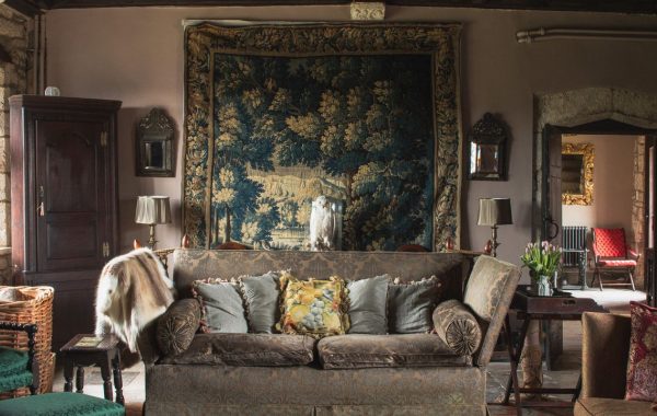 Para agregar superficies de almacenamiento y exhibición a la sala de estar, Alonso aprovechó lo que él llama “puntos muertos” en cada rincón. “En realidad no se puede poner un mueble allí”, explica. En su lugar, diseñó unidades de almacenamiento de madera triangulares y las revistió con vidrio Judson, dándoles un aspecto artesanal que estaba en sincronía con la sensación de la casa de los años 20. Mientras tanto, a la izquierda del sofá, colaboraron nuevamente con Miguel Rojas para crear una mesa auxiliar que también sirve como jaula para el perro de la abuela Willis. “Tiene una red en la puerta, como una casita”, explicó Alonso.