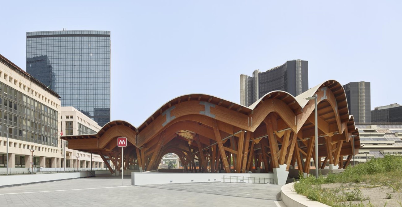Italia> Centro Direzionale, estación central de metro de Nápoles, obra de la arquitecta Benedetta Tagliabue – EMBT Architects. (base metálica)