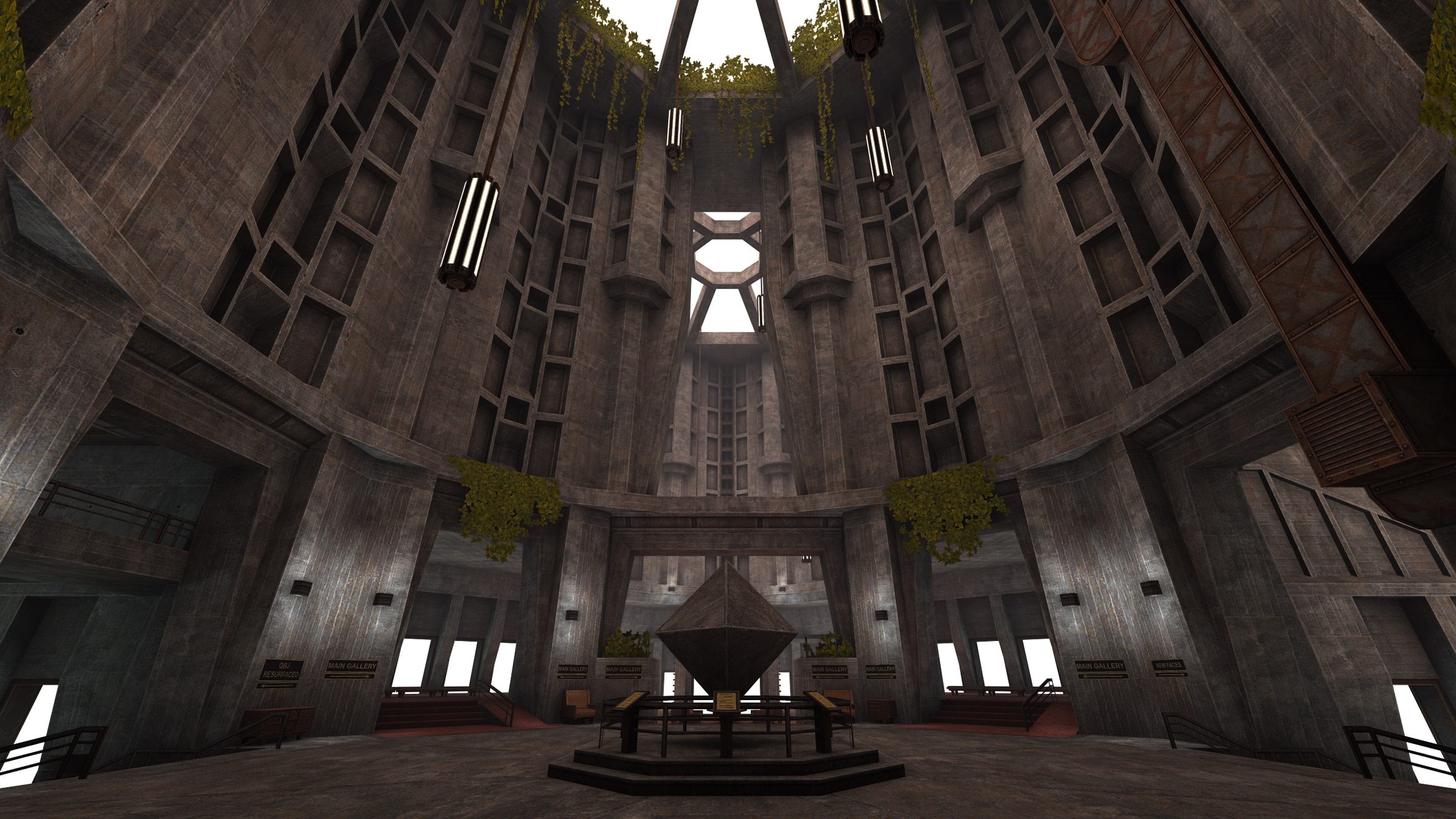 El brutalismo encajaba perfectamente en Quake Jam, no sólo por la experiencia de Hale en el diseño de texturas, sino también porque se adaptaba al estilo del juego en sí.