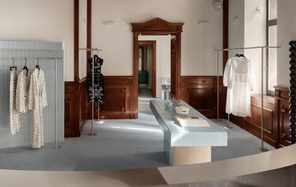 Los suelos del interior están pavimentados con piedra arenisca de la India, mientras que la estructura de hormigón queda expuesta.