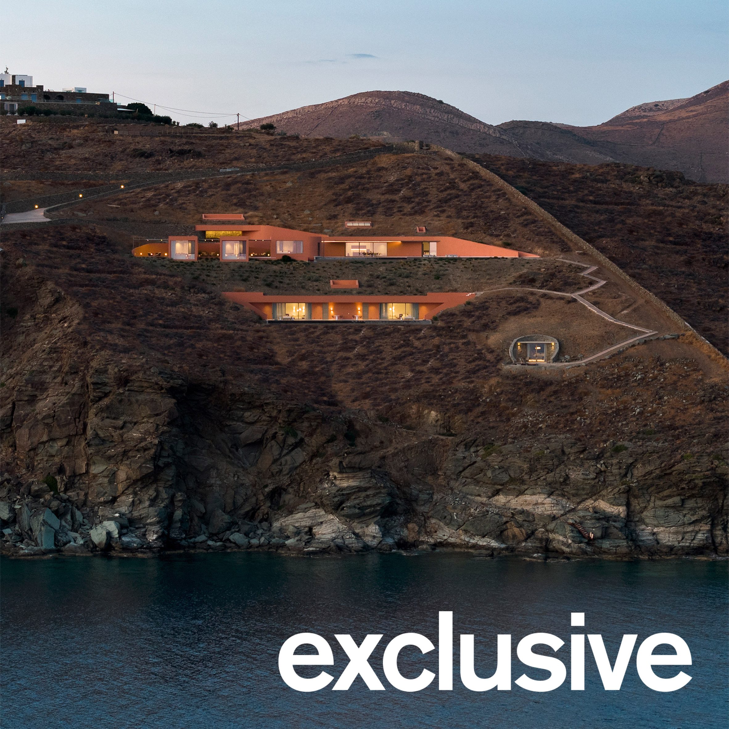 El estudio griego Ateno Architecture Studio completó Olen, subterráneo costero hotel Situada en la isla de Syros, la isla está medio enterrada al borde de un acantilado y ofrece vistas despejadas del mar Egeo.