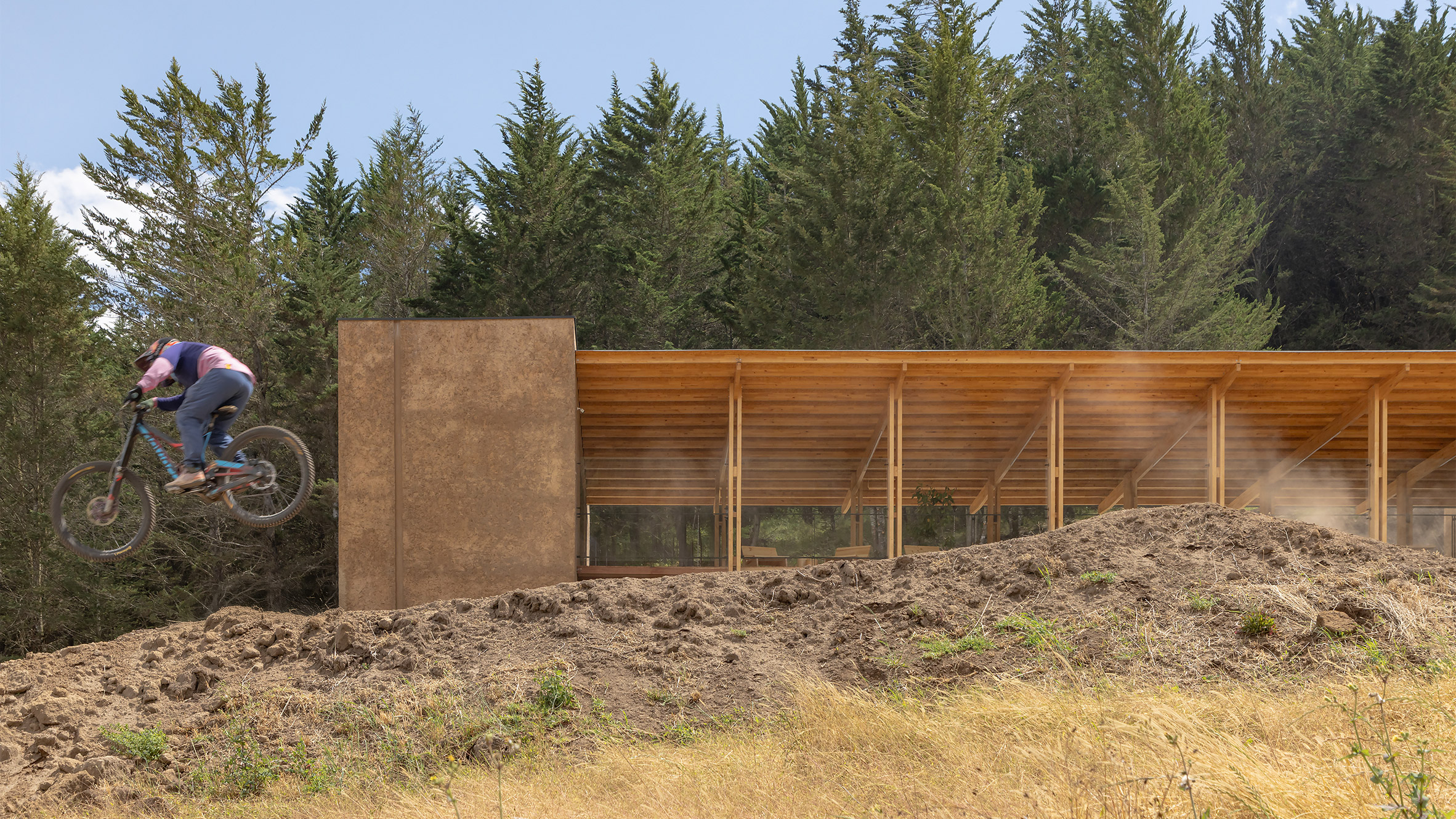 Conocida como el Refugio de Bicicletas de Pamba, la estructura al aire libre de 900 metros cuadrados (9,675 pies cuadrados) sirve como refugio del duro clima andino para los residentes del Parque de Bicicletas de Montaña Ascazubi Pambamarca de Ecuador.