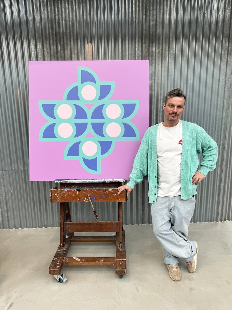 Su arte es conocido por sus colores llamativos y el uso de formas geométricas. Sus pinturas se encuentran en la intersección del Op Art y lo efímero iluminado con luces de neón de su juventud. Mañana, su trabajo será el rostro de la aparición de Universal Music Group en la ceremonia de premiación.