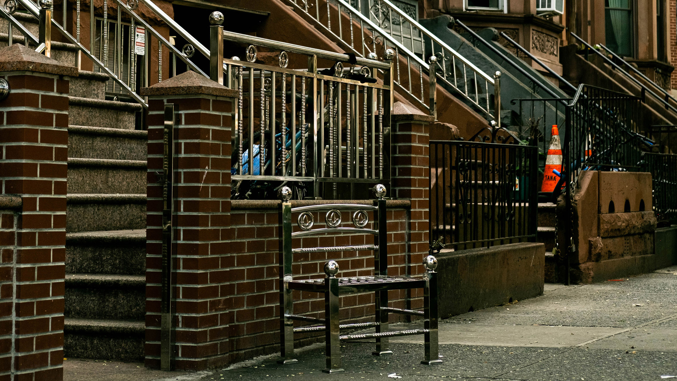 El diseñador Han Seungmin utiliza materiales producidos en masa para crear una silla Acero inoxidable Esgrima en las comunidades asiáticas y antillanas Nueva York “Desafiando la imagen idílica del ‘sueño americano'”.