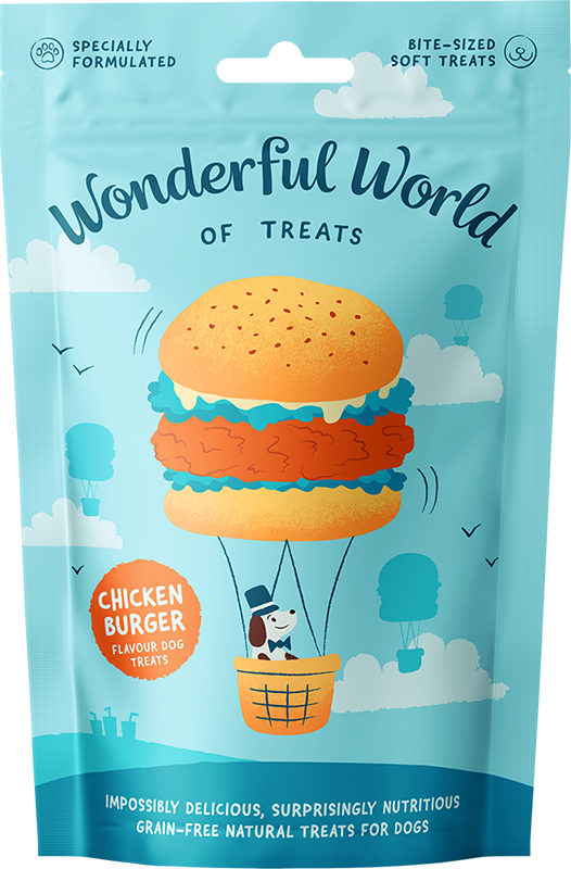 La mayoría de los envases de golosinas para mascotas comunican funcionalidad. Enumera el porcentaje de proteína. Utiliza una fuente sans serif limpia en blanco clínico o verde bosque. Le dice al dueño lo que hace la golosina, no cómo se siente. Wonderful World of Treats, desarrollado por la agencia Fishfinger con sede en Londres, adopta exactamente la postura opuesta.