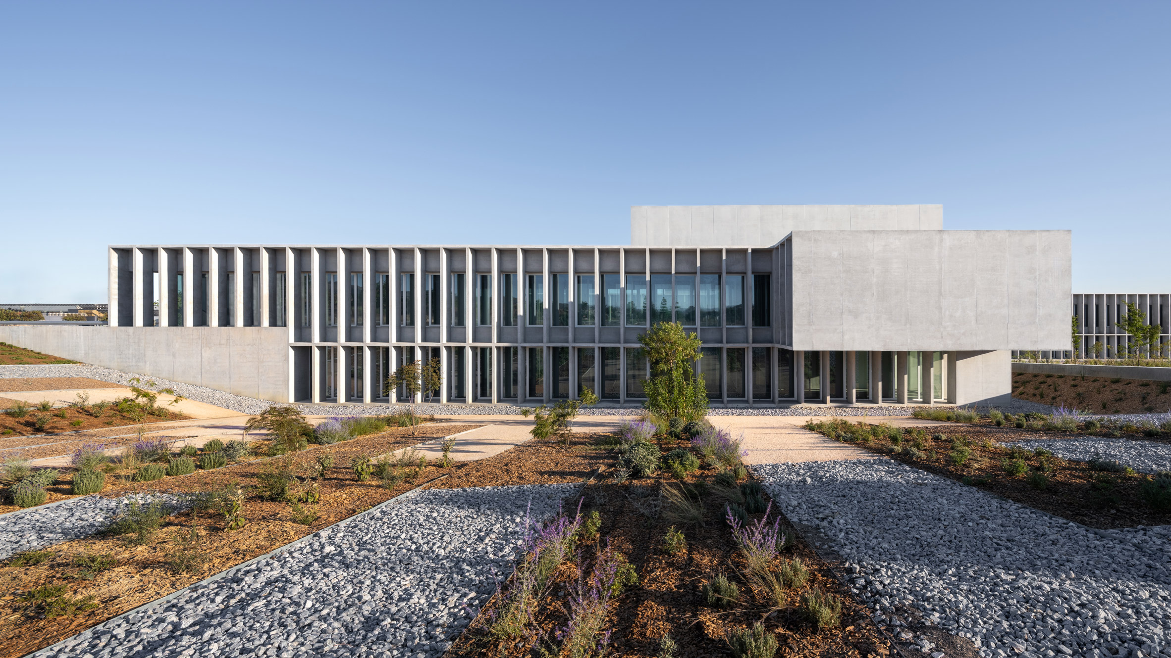 Claustros de hormigón reticulado definen los edificios universitarios de Málaga