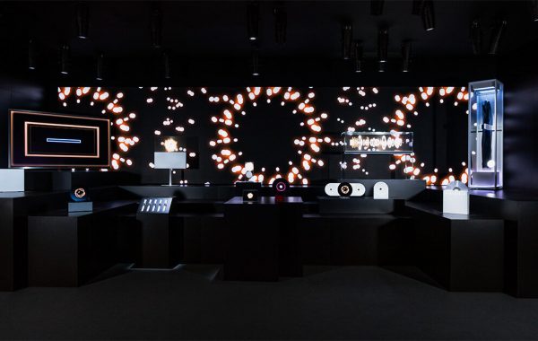 Las exhibiciones en Shoppe Object 2026 presentan filas de pequeños dispositivos electrónicos con forma de casas, plantas en macetas y productos en cajas, todo contra paredes blancas y nítidas.