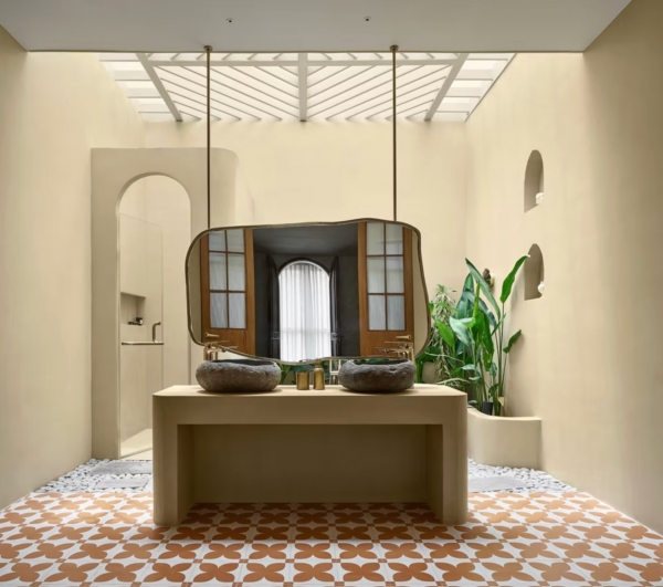 En el baño principal, un gran tragaluz permite que la luz natural llene el espacio.