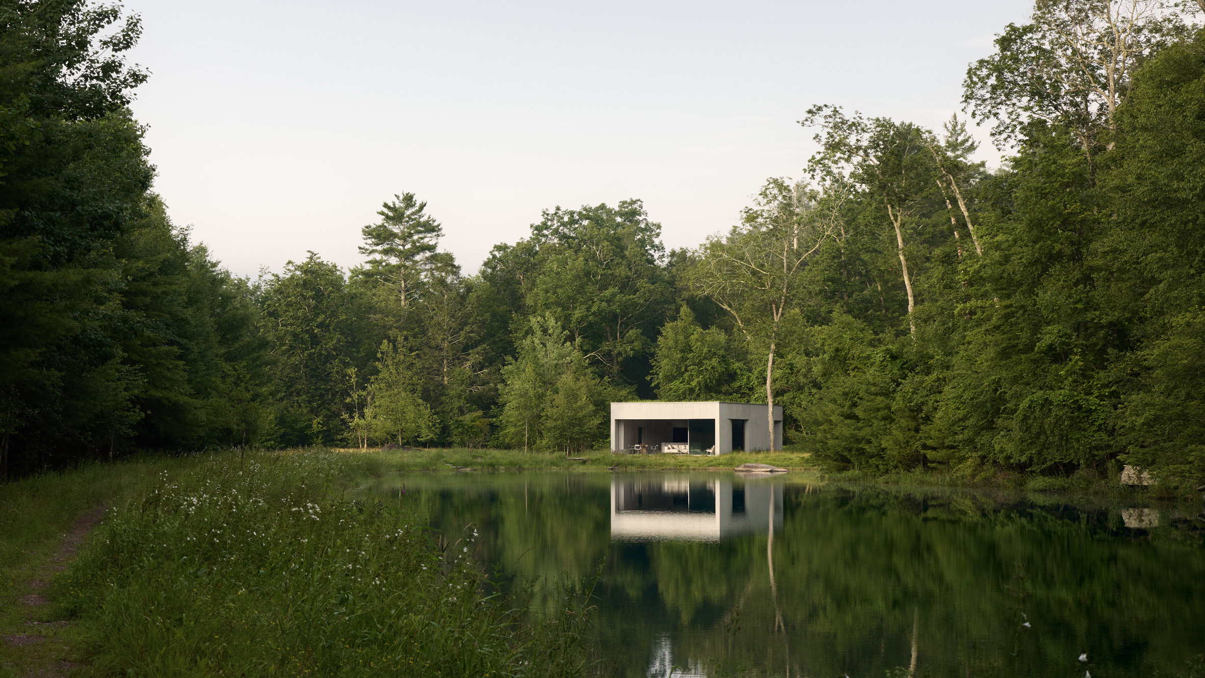 El Pabellón Vipp se construyó al borde de un estanque en Lumberland, Nueva York, a dos horas en coche de la ciudad.