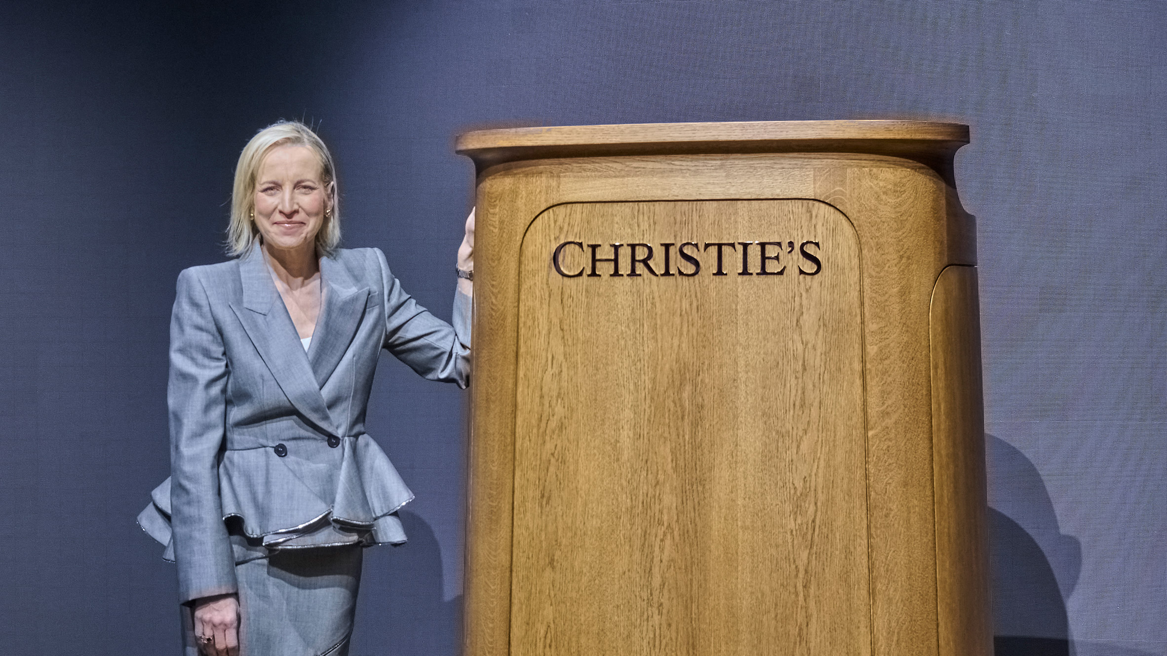 “El propósito del podio es elevar literal y figurativamente el estatus de los subastadores, proporcionando un escenario para su autoridad y experiencia que lleva con orgullo el logotipo de Christie’s”, dijo Ivey.