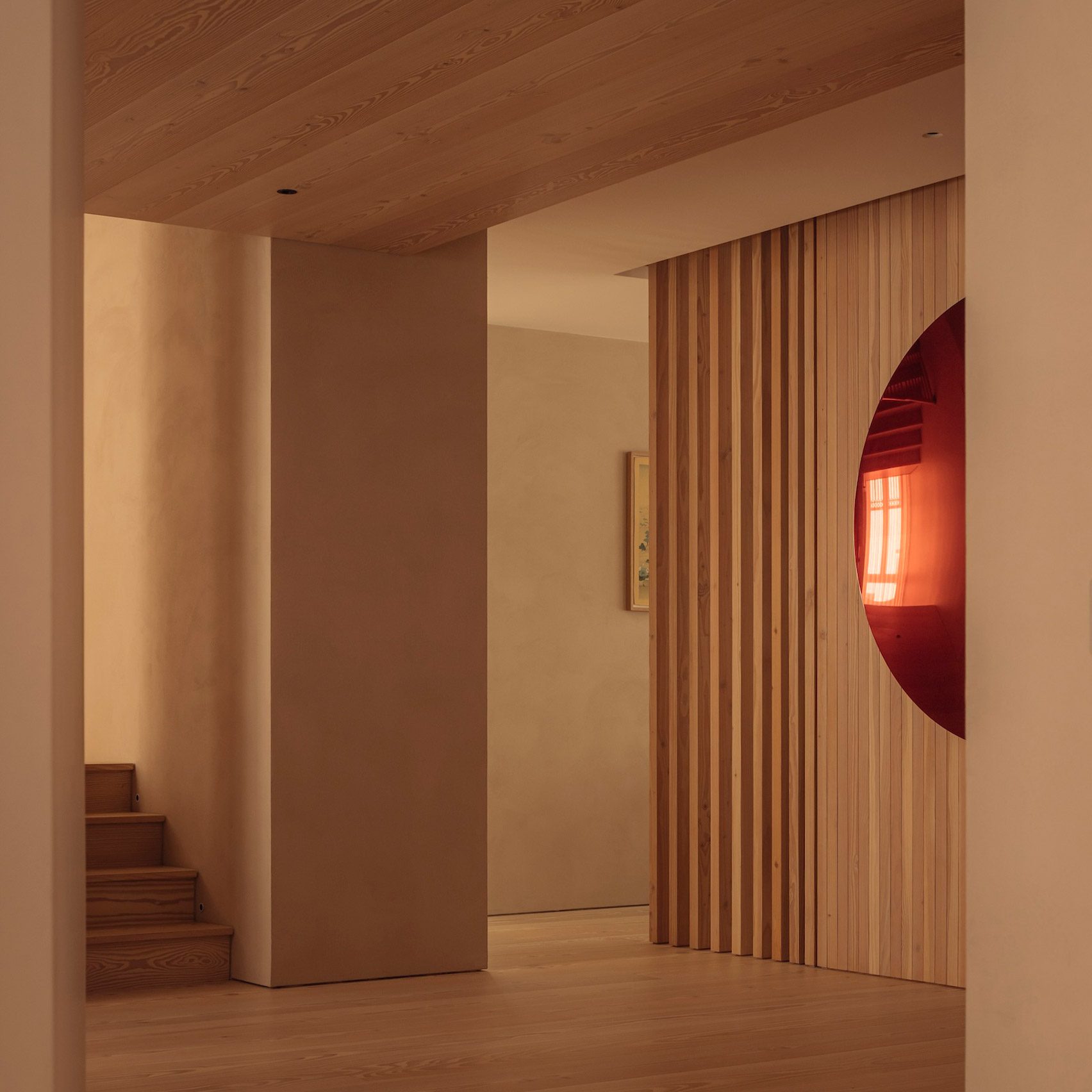 El espacio habitable reducido y la carpintería de abeto Douglas contribuyen a una sensación más íntima Casa adosada existir Lisboa Transformado por el estudio de arquitectura británico McLean Quinlan y presenta obras de arte Anish Kapoor.