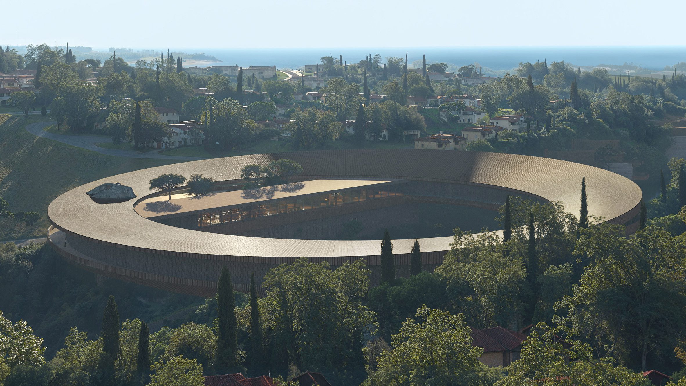 La principal contribución de Snohetta a Ion Riva es “The Ring”, una estructura circular elevada que se extiende sobre un río y contendrá espacios comunitarios con fines educativos. A continuación se encuentran los establos y los terrenos.