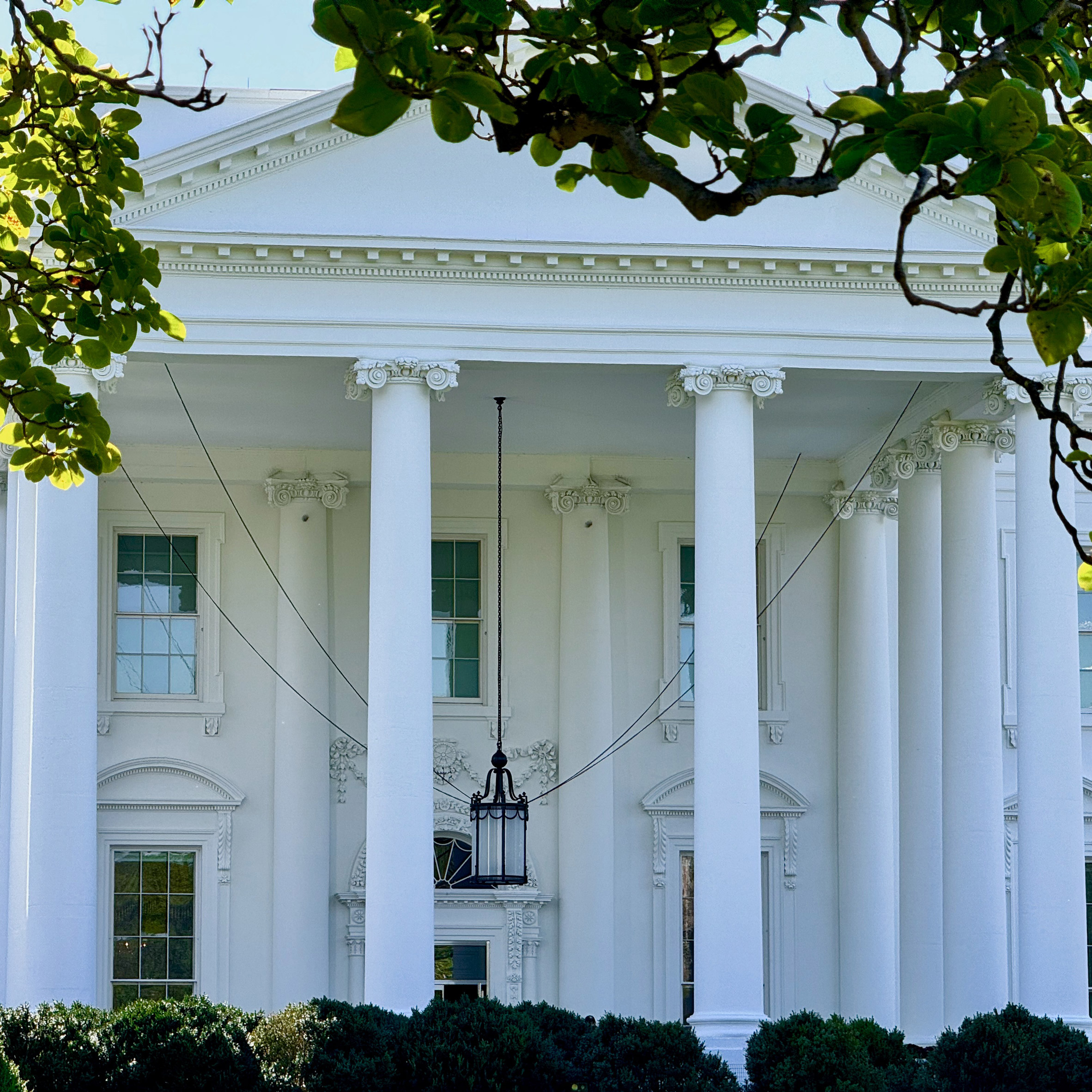 Foto superior de la columna actual de la Casa Blanca de Harrison Keely.