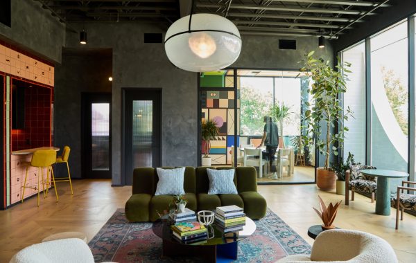 Para crear las luces rosa, violeta y naranja, Gallée utilizó resina, un material que ha utilizado en proyectos anteriores, entre ellos mesa consola geométrica translúcida y Lámpara con efecto de superficie líquida.