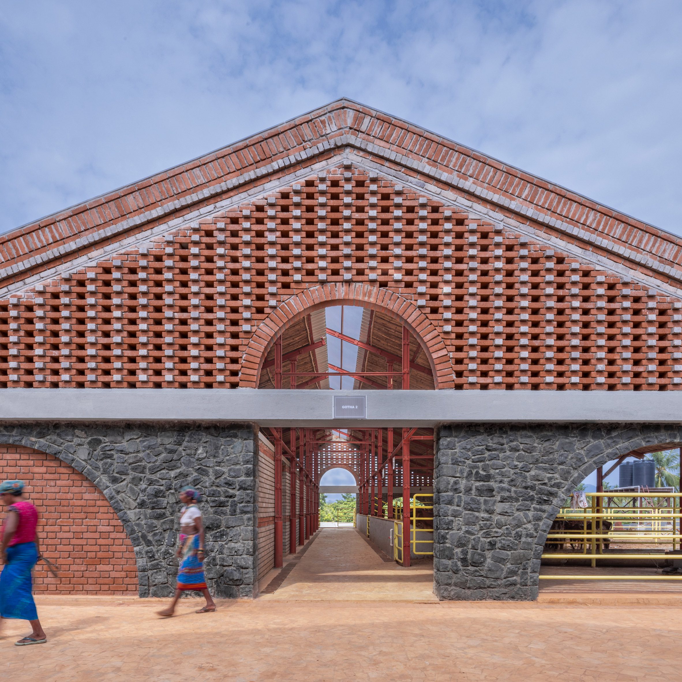 En otras partes de la India, El estudio de arquitectura Studio Saar completó recientemente una granja lechera en Rajasthan. Se utilizó una variedad de acero reciclado y grava, obtenidos en un radio de 30 km del sitio.