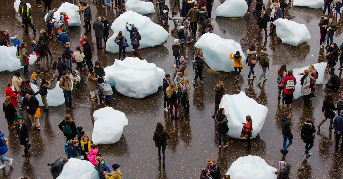 Además, Eliasson también ha creado obras centradas en el cambio climático como “Ice Table” (2014) y “Glacier Series” (1999). Estos proyectos transforman los datos ambientales en algo que las personas pueden experimentar directamente, haciéndolo más tangible. Ya sea llevando el hielo derretido a los centros urbanos o mostrando comparaciones fotográficas de los glaciares que cambian con el tiempo, ayudan a cerrar la brecha entre la información distante y la comprensión inmediata. En este contexto, el cambio climático se vuelve visible, tangible y más difícil de ignorar.