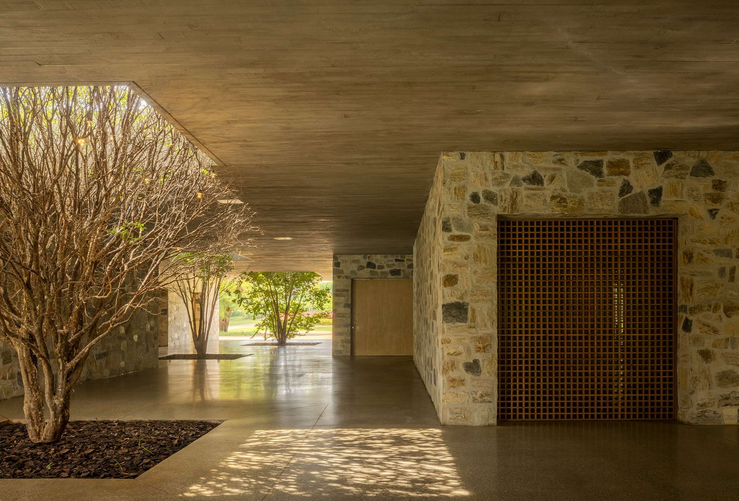 Hoy en día, la misma lógica sigue influyendo en el diseño. En lugar de agrupar toda la funcionalidad en un bloque compacto, el plano de planta disperso distribuye la funcionalidad como una serie de volúmenes más pequeños por todo el sitio. Los espacios entre ellos se convierten en patios, caminos y salas al aire libre, incorporando el movimiento de la naturaleza a la arquitectura.