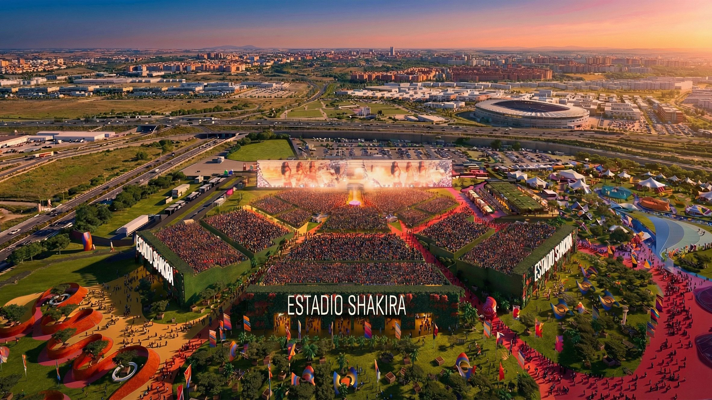 “Como expresión inmersiva de la identidad latina contemporánea, el Estadio Shakira en Macondo Park celebra la música, la cultura y la conexión humana en un paisaje vibrante”.