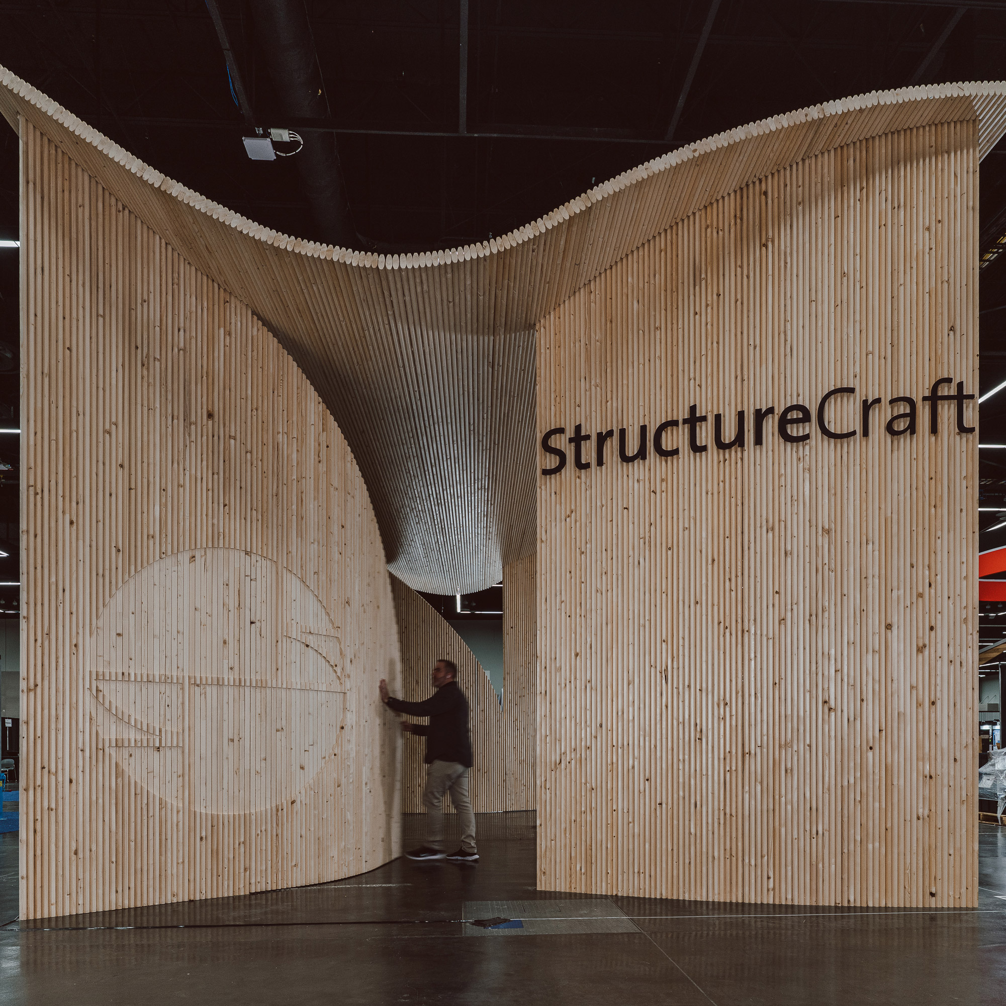 “La madera en masa ya no es plana”, dijo a Dezeen Lucas Epp, vicepresidente y jefe de ingeniería de Structurecraft.