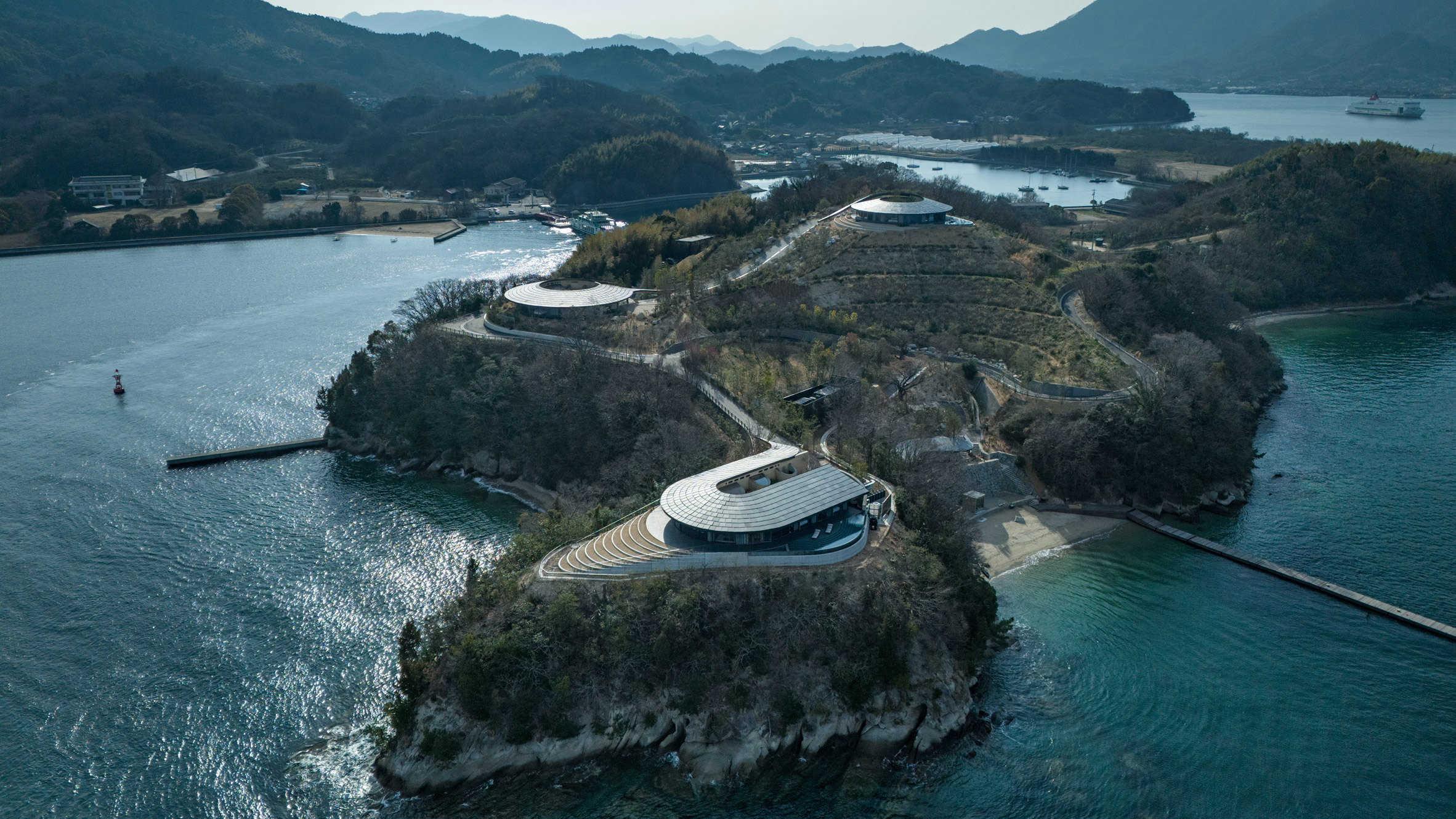 “El archipiélago que rodea Sagijima se asemeja a una pintura de paisaje japonés. Colinas empinadas cubiertas de exuberante vegetación brotan del tranquilo mar interior de Seto. Los cuatro pabellones están concebidos como extensiones de la espectacular topografía”, añadió.