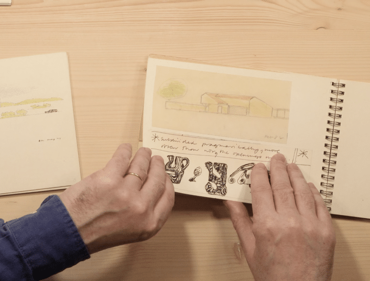 En este cortometraje, Ellis Woodman nos muestra cuatro cuadernos de bocetos utilizados por el arquitecto escocés James Gowan (1923-2015). Estos cuadernos de bocetos cubren treinta años de ideas, observaciones y diseños de Gaughan. Como describe Ellis, son muy amplios en alcance y contenido; algunos trabajan para resolver problemas de diseño, mientras que otros son especulativos o retrospectivos y analizan cómo podría o debería haberse diseñado el proyecto.